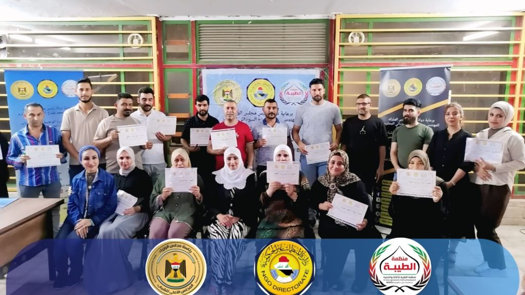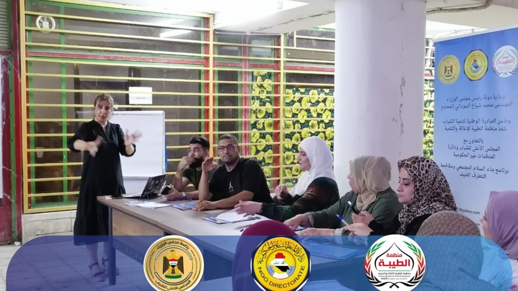رعاية كريمة من دولة رئيس مجلس الوزراء المهندس محمد شياع السوداني المحترم، واستنادًا إلى المبادرة الوطنية لتنمية الشباب، وبدعم وتعاون مشترك مع المجلس الأعلى للشباب ودائرة المنظمات غير الحكومية، نظّمت منظمة الطيبة للإغاثة والتنمية ورشة تدريبية متخصصة استمرت ليومين، وذلك بتاريخ 23 و24 حزيران 2025، في محافظة بغداد.