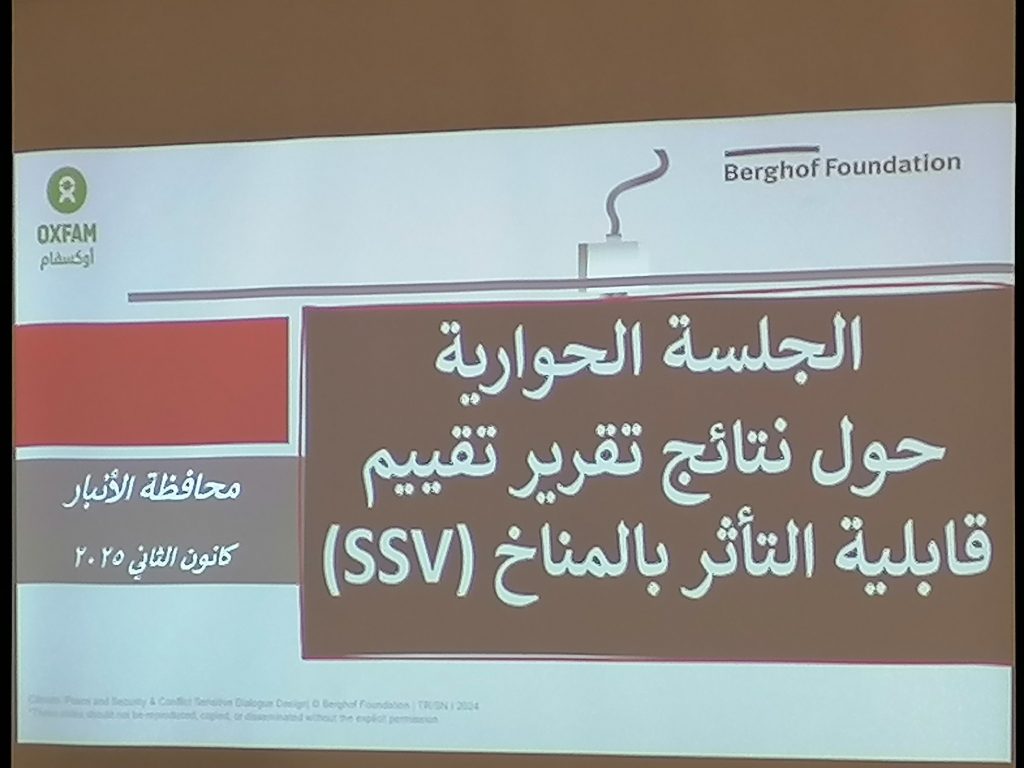ضمن سلسلة اجتماعات اللجنة التحضيري للجلسات الحوارية حول نتائج تقرير تقييم قابلية التأثير بلمناخ (SSV) ضمن مشروع (المشاركة والبحث والتكيف والتخطيط للتغير المناخي في محافظة الانبار قضاء الفلوجة)